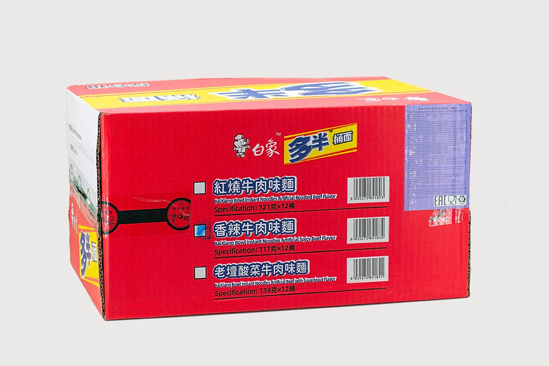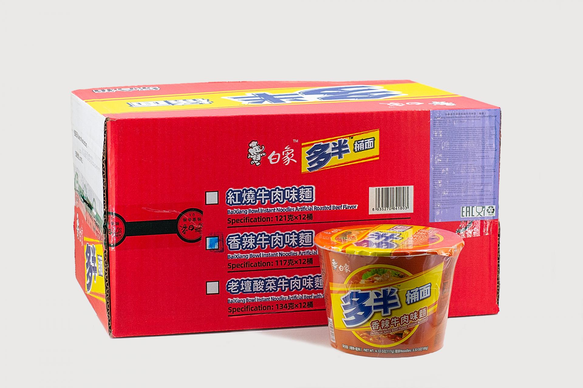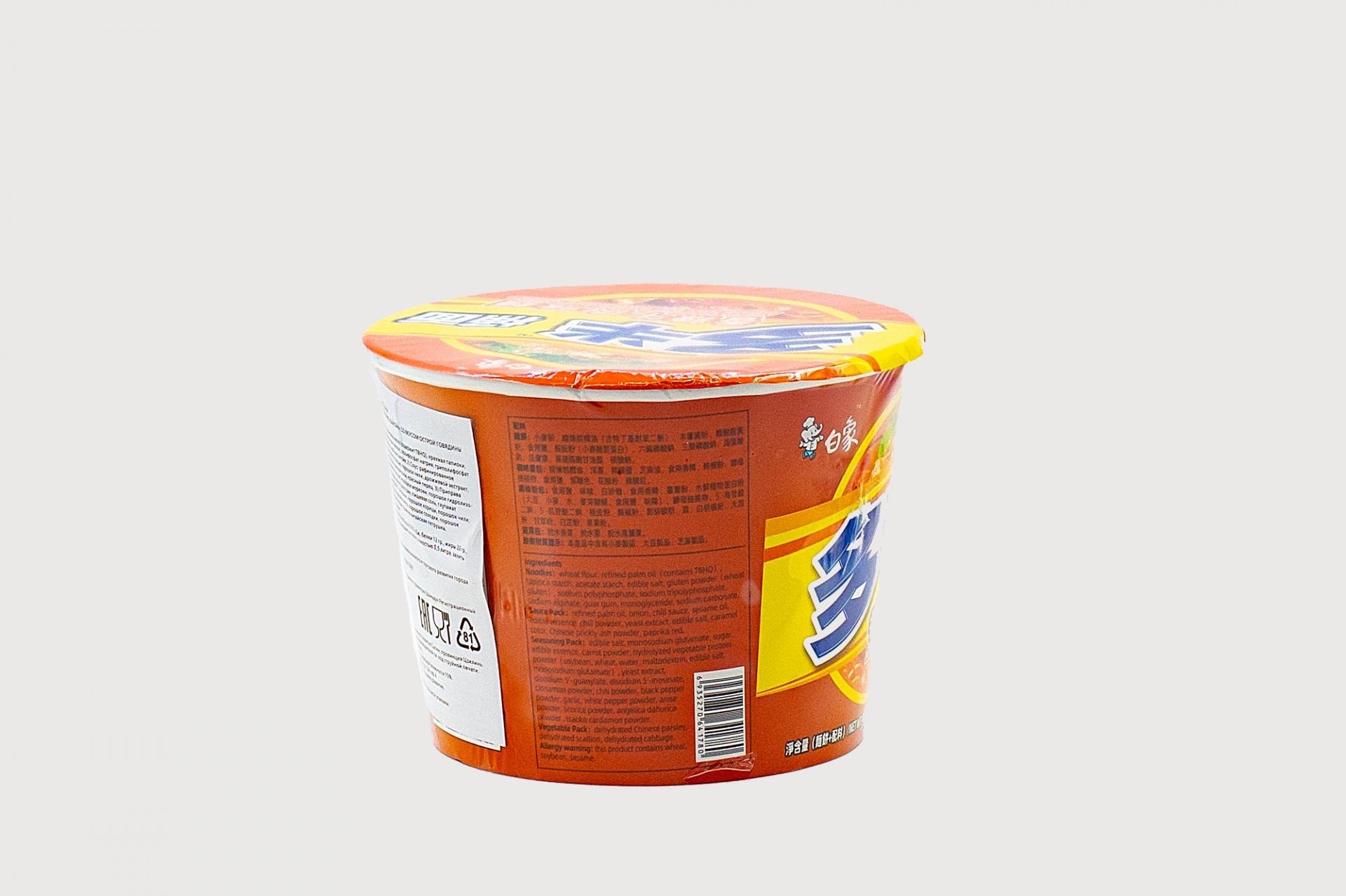 Лапша быстрого приготовления BaiXiang со вкусом острой говядины 117 гр114,43 руб. за штуку (в упак. 12 шт.) |
